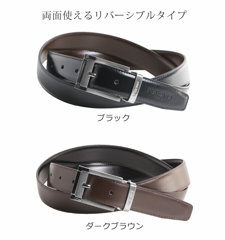 renoma 牛革 リバーシブル ベルト メンズ ピンタイプ バックル ブランド ビジネス フォーマル 本革 プレゼント レノマ 30mm レザーベルト ブラック ブラウン ギフト 父の日 (No.09000124r)