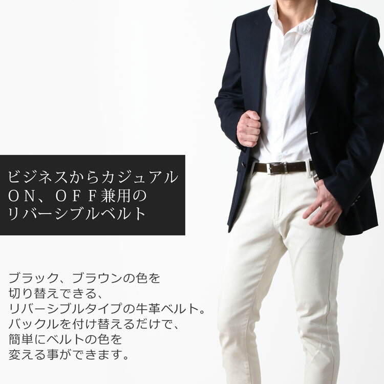 バックルを付け直すだけで、ブラックとブラウンの2色のベルトを楽しめるリバーシブルタイプとなっています。