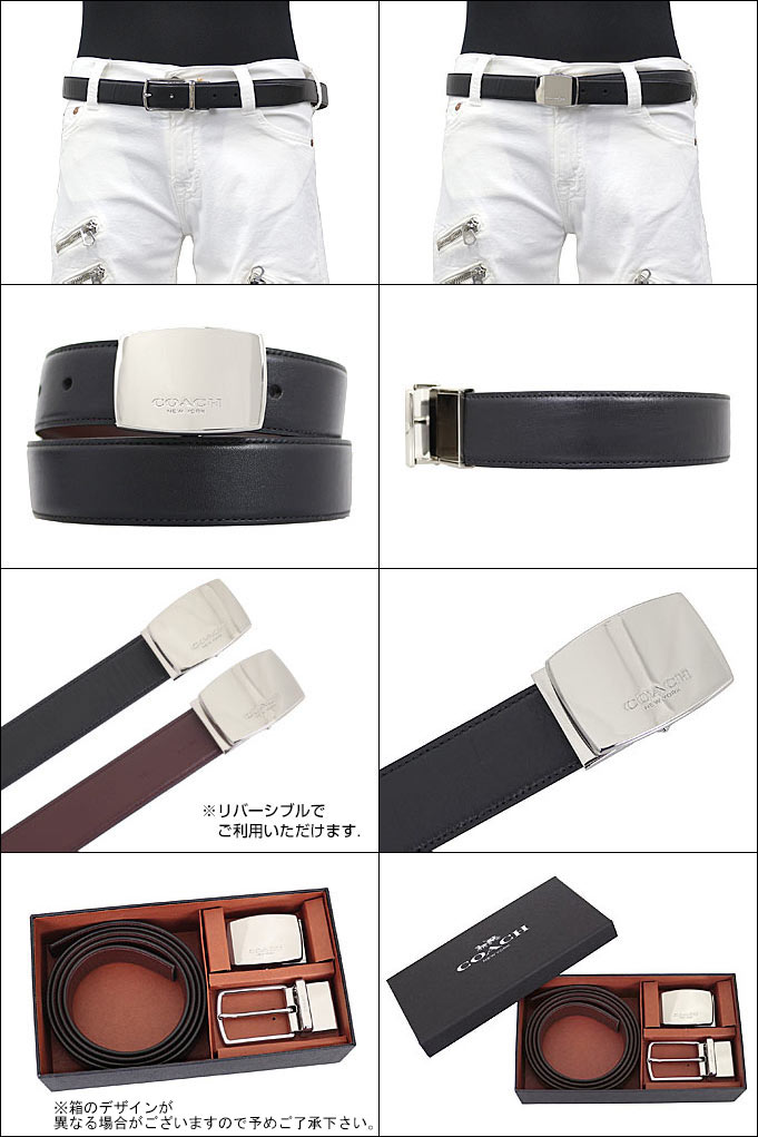 【26時間限定ポイント10倍】コーチ COACH 小物 ベルト F65185 ブラック×ダークブラウン 特別送料無料 コーチ ドレス プラーク カット トゥ サイズ リバーシブル レザー ベルト 3点セット (ボックス付き) アウトレット品メンズ ブランド 通販 父の日 あす楽