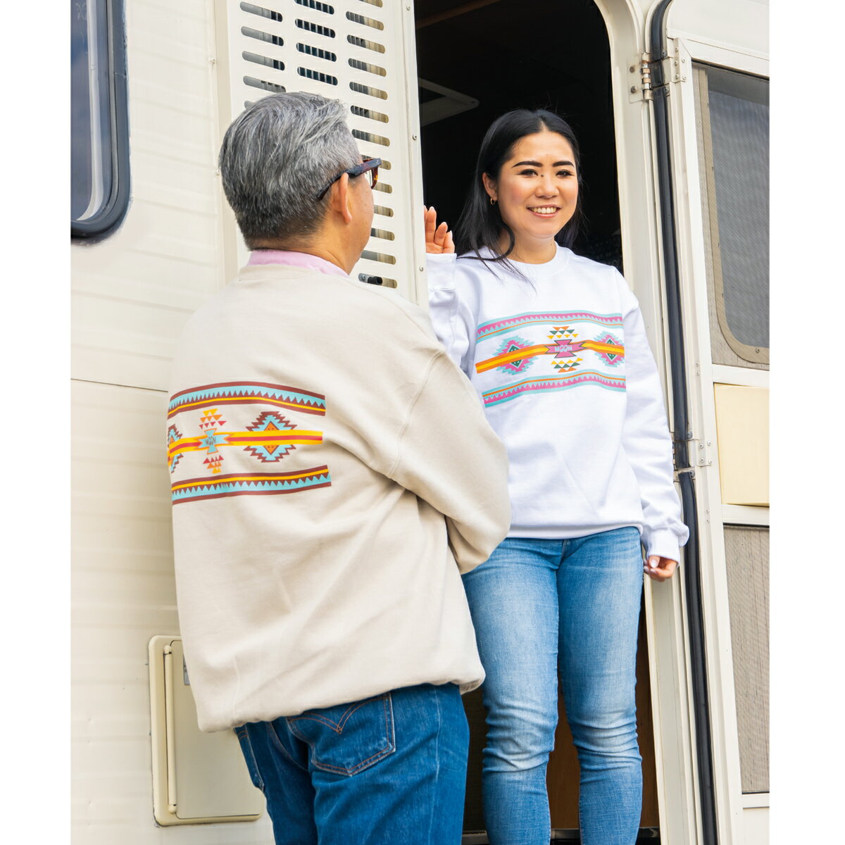 ビッグシルエット スウェット トレーナー デゼニスタ 大人 デザイン ユニセックス メンズ レディース 長袖 綿100% よれない 透けない コットン ゆったり 大きめ アメリカ規格 リブ付き オルテガ エスニック インディアン カジュアル