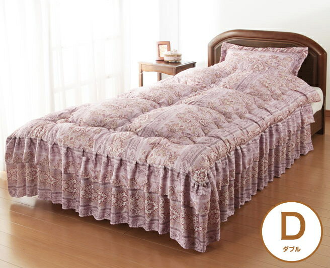 シルク混 ダブルフリルベッド 布団 ダブル 同柄枕カバー付き 抗菌・防臭加工 同柄枕カバー付き(代引不可)【送料無料】【S1】