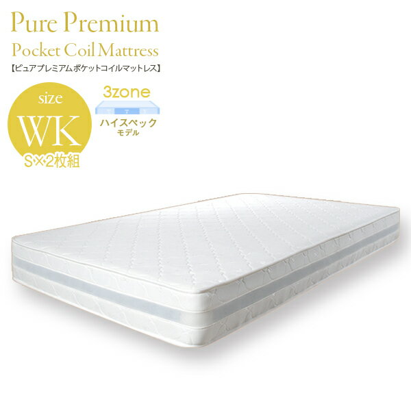 マットレス 敷き布団 ポケットコイル ピュアプレミアムポケットコイル マットレス ワイドキングサイズ 幅97cm×2枚組(SI)