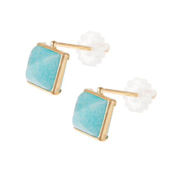 ミルキーブルーの淡い色味が特徴的なアマゾナイトピアス。