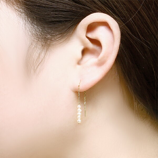 キュートなベビーパールを連ねたフェミニンな揺れピアス♪