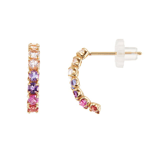 地金素材:K10YG使用宝石:クォーツ・ローズクォーツ・ピンククォーツ・ライトアメシスト・アメシスト・ロードライトガーネット・アルマンダインガーネット大きさ(縦×横):約13×2mm※サイズガイドはこちら※有料ケースはこちら