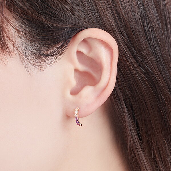 ピンクの色合いが可憐な印象を与えるマルチストーンピアス。